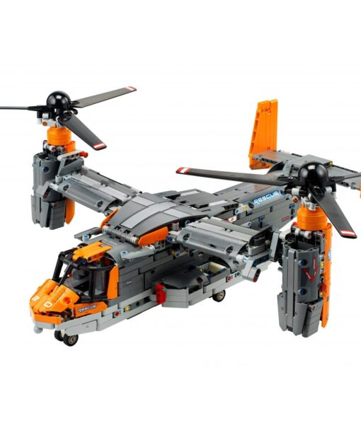 Zestaw Bell Boeing V-22 Osprey 42113 to wierna replika pierwszego na świecie samolotu z wirującym wirnikiem, zdolnego do pionowego startu i lądowania (VTOL) oraz krótkiego startu i lądowania (STOL). Zestaw zawiera funkcje takie jak chowane podwozie, obracające się śmigła i otwierane drzwi ładowni.