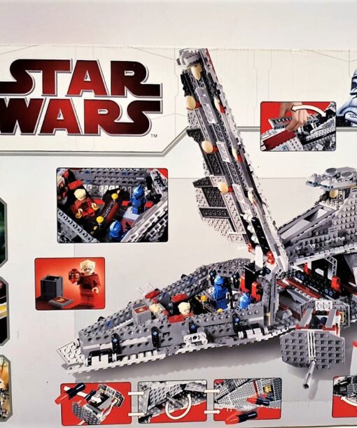 Zestaw zawiera autentyczne elementy, takie jak charakterystyczne czerwone paski, mostek dowodzenia i hangar, w którym znajduje się model Republikańskiego Gwiezdnego Niszczyciela wykonany z klocków. Model mierzy ponad 43 cale (109 cm) długości, co czyni go imponującym centrum dowolnej kolekcji.